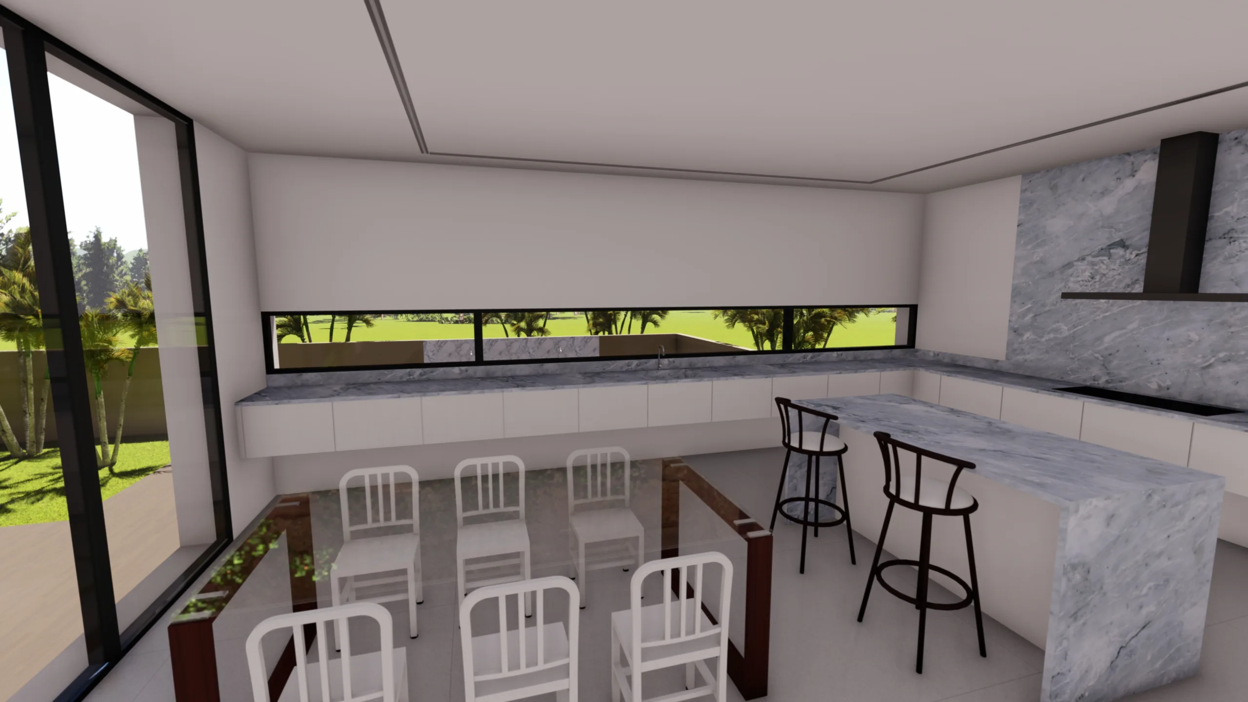 Sobre este espacio, una amplia cocina-comedor bañada de luz se asoma al paisaje.