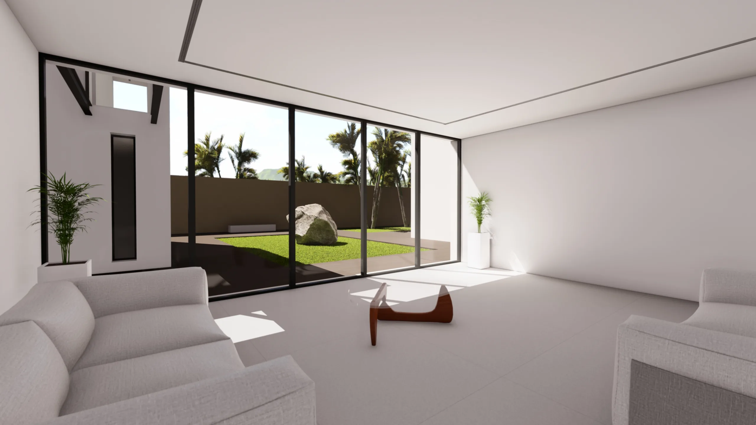 Cada cubo, de proporciones exactas y contundentes, se convierte en una pieza de un puzle arquitectónico que invita a recorrer la vivienda a través de jardines íntimos y patios intermedios, donde la luz y la sombra se entrelazan a cada paso.